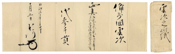 Caratteristiche speciali: Lettera congiunta dei Cinque Anziani (Go-Tairō) di Toyotomi Hideyoshi (Antico Origami di riconoscimento)